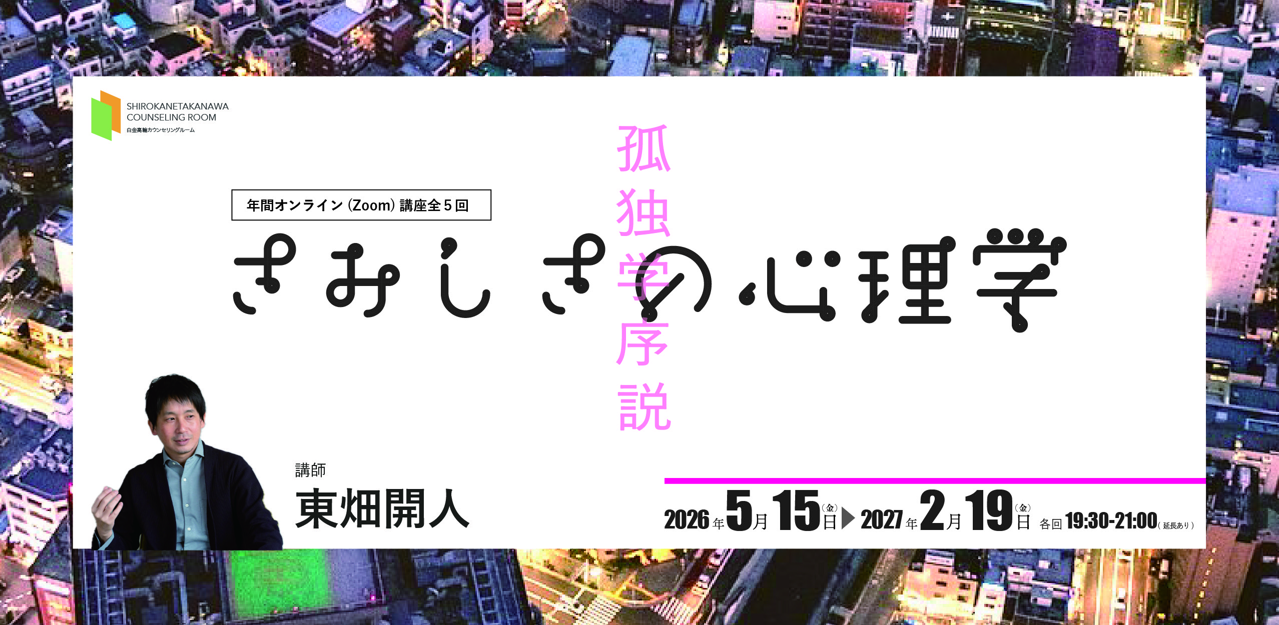 またそうした臨床経験を土台にして、夫婦の問題、職業に関する悩み、個人の心理的問題や生き方に関わる悩みなどのカウンセリングやセラピーも行っています。